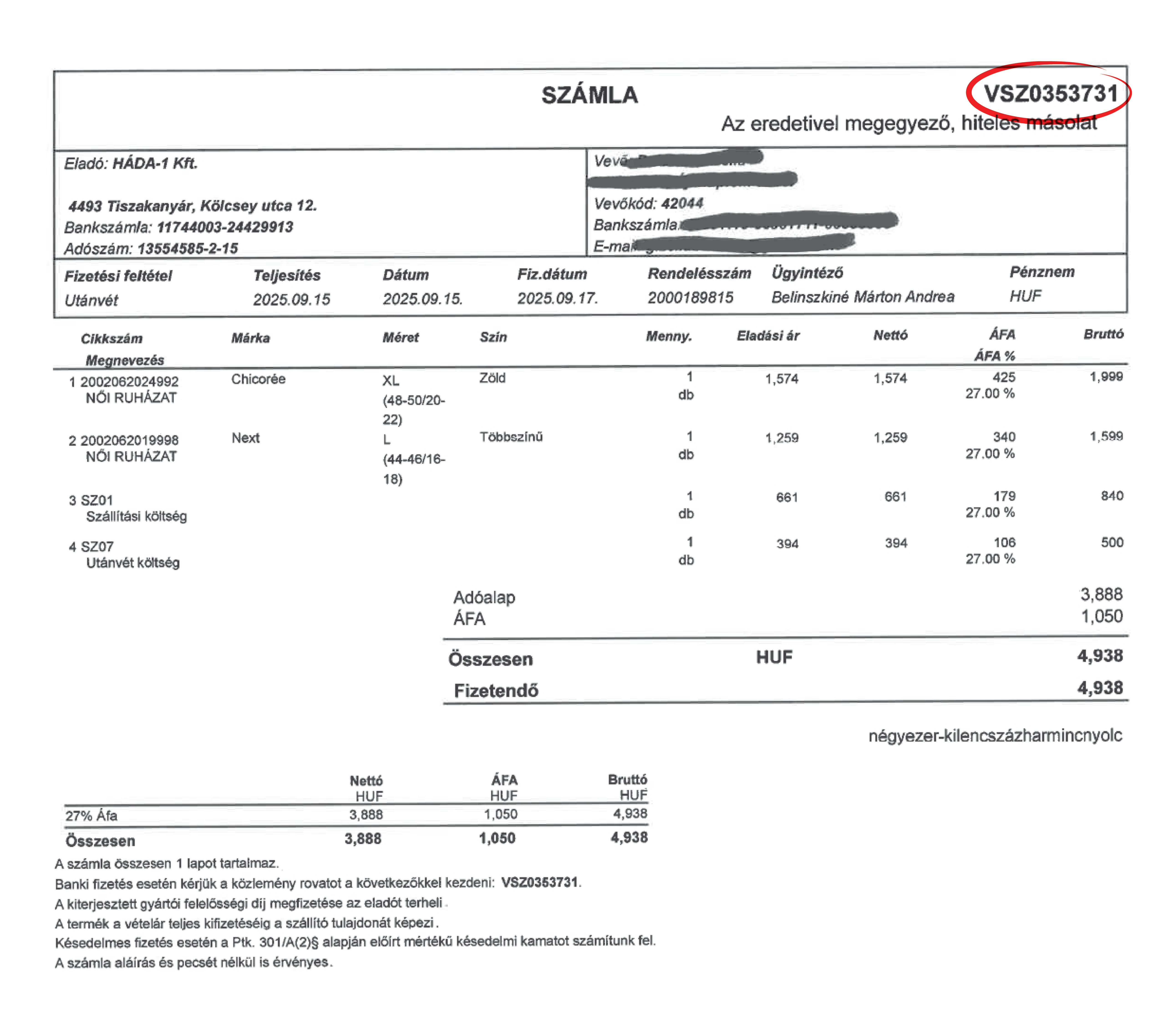 Töltsd fel a vásárlást igazoló dokumentum adatait!